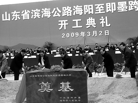 海陽至即墨跨海大橋與海陽核電、海陽港、第三屆亞洲沙灘運(yùn)動(dòng)會(huì)場(chǎng)館建設(shè)并列為海陽市“四大重點(diǎn)工程”,是山東省濱海公路海陽段的重要組成部分。山東省濱海公路海陽段東接威海市濱海公路終點(diǎn),經(jīng)跨海大橋過即墨栲栳島與青島市濱海公路北段相連,全長(zhǎng)59公里。全線設(shè)特大橋一座,大橋6座,平面交叉25處。該項(xiàng)目2009年開工建設(shè),計(jì)劃2011年竣工通車,項(xiàng)目建設(shè)資金約12億元。