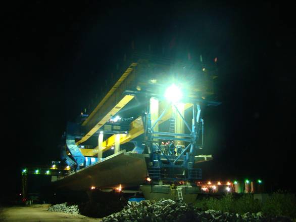 由于東北地區(qū)冬季氣候寒冷,風(fēng)力經(jīng)常在6級(jí)以上,因此項(xiàng)目部在元月進(jìn)入冬休整備期。在冬休期間,項(xiàng)目部留守人員堅(jiān)持按照設(shè)備保養(yǎng)計(jì)劃定時(shí)對(duì)設(shè)備進(jìn)行保養(yǎng)和檢測,同時(shí)利用這段時(shí)間對(duì)運(yùn)梁車進(jìn)行了維修。今年冬季大連地區(qū)天氣情況良好,中鐵一局局指揮部要求項(xiàng)目提前開工。項(xiàng)目部各部門、班組人員接到領(lǐng)導(dǎo)通知后迅速反應(yīng),通知各崗位人員提前到位,真正發(fā)揚(yáng)了“招之即來,來之即戰(zhàn),戰(zhàn)之能勝”的風(fēng)格。在搶工人手緊張的同時(shí),項(xiàng)目部仍然時(shí)刻將安全放在首位,對(duì)新進(jìn)勞務(wù)工進(jìn)行了為期7天的脫產(chǎn)崗前培訓(xùn)。培訓(xùn)涉及安全生產(chǎn)、項(xiàng)目管理、施工技術(shù)等方面,所有人員必須合格后方能上崗。對(duì)冬休人員還進(jìn)行了崗前安全再教育。項(xiàng)目部員工斗嚴(yán)寒、戰(zhàn)風(fēng)雪,在及其艱苦的環(huán)境下對(duì)設(shè)備進(jìn)行運(yùn)轉(zhuǎn)調(diào)試,同時(shí)克服了架橋機(jī)新更換的二、三號(hào)柱減速機(jī)故障造成的工期滯后。工班人員分成兩班日夜作業(yè),項(xiàng)目領(lǐng)導(dǎo)輪流值班,積極配合武研院進(jìn)行搶修,成功完成了永清公路特大橋第三孔箱梁的架設(shè)工作,打開了哈大架梁項(xiàng)目部2009年攻堅(jiān)之戰(zhàn)的序幕。