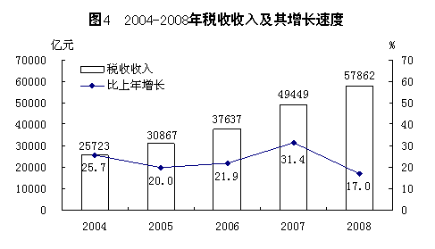 全年稅收收入57862億元(不包括關稅、耕地占用稅和契稅),比上年增加8413億元,增長17.0%。