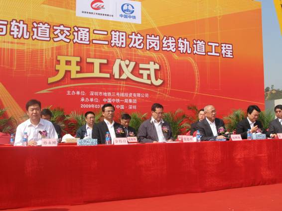 中鐵一局董事長孫永剛在典禮講話中說:軌道業務是我公司的優勢項目和優良資產。特別是近年來,我們立足自主創新,實施科技興企,針對軌道業務發展的特點趨勢,加強研發及應用,形成一批科技含量高、具有自主知識產權的科研成果和工法,得到業界肯定,并出色完成了北京、上海、廣州等地近20項軌道施工任務,積累了豐富的經驗,培養出了優秀的隊伍。他承諾:我們將集結精兵強將,以唯實唯美的作風,確保一次成優,把龍崗線軌道工程建成精品工程。
