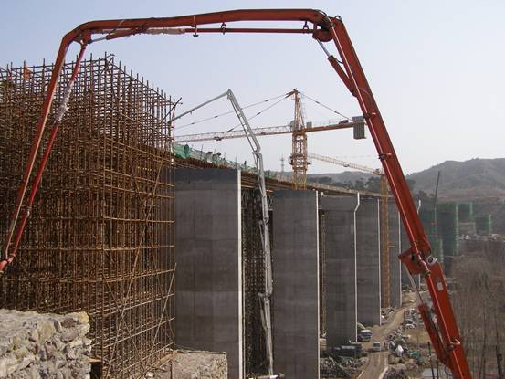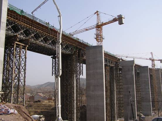 中國鐵建中鐵十五局集團華北指京承項目部承建的京承高速湯河大橋,全長471米,共八聯12垮,單箱雙室預應力砼現澆梁。該大橋墩高、垮度大、技術含量高是業主控制工期的重、難點工程。經過全體員工二天二夜晝夜施工,于2009年3月18日順利完成第4聯右幅首件箱梁澆筑任務。為確保業主總工期目標奠定了基礎。