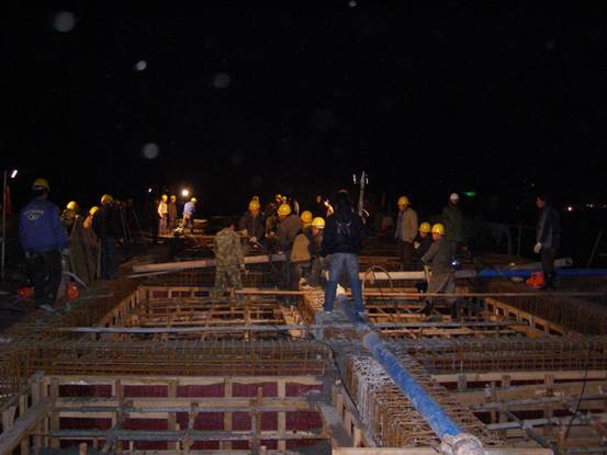 由于施工前準備工作細致,施工中過程控制有序,在保證安全質量的同時,湯河大橋首件箱梁砼澆筑比原計劃提前三小時完成。