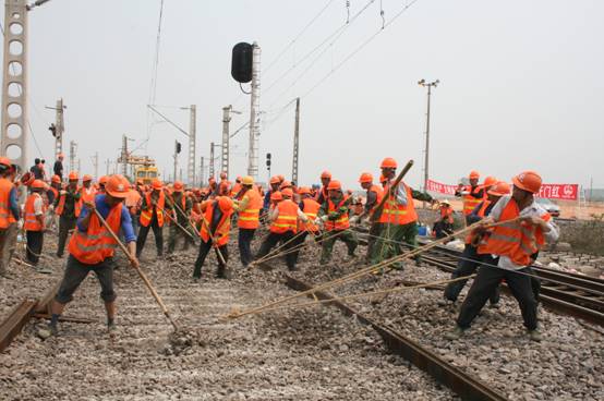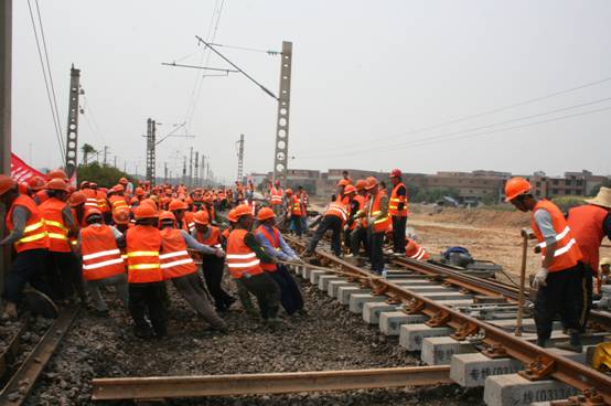 因此,東孚鋪軌基地建場時間緊、任務重。3月19日,為了盡快打開基地路料運輸通道,加快基地建設進度。新運工成公司黨委副書記、紀委書記、福廈廈深鋪軌項目部項目經理鄭樹祥,親自擔任撥接施工總指揮,精心組織施工,確保既有現撥接安全正點。上午11:12時,慢行命令下達, 15:15時,廈門至景德鎮的客車徐徐通過。中鐵一局參建員工在3個小時內成功插入2組道岔,在營業線撥接施工并能安全正點開通線路,打開進料通道。得到南昌鐵路局工務、電務等配合單位的一致好評。