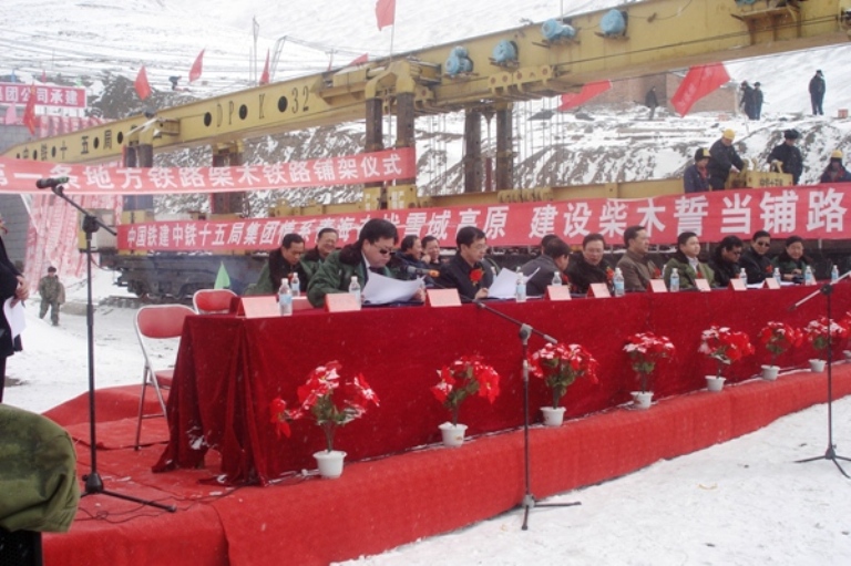 上午11時,鋪架開工儀式在大通山隧道進口隆重舉行,青海省常務副省長徐富順、省發改委、省環保局、海北州、省交通廳、青藏公司、建設指揮部及設計監理參建單位代表出席儀式。典禮上,中國鐵建中鐵十五局集團六公司柴木鋪架項目部常務副經理付心亮代表施工單位作了發言。