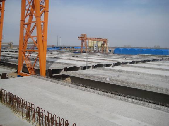 目前,梁場(chǎng)箱梁預(yù)制各道工序明顯加快,制梁周期大大縮短,基本達(dá)到了一天兩跨的速度,高峰時(shí)可達(dá)每天三跨,在突破200跨箱梁預(yù)制的同時(shí),禹城梁場(chǎng)目前箱梁架設(shè)完成122跨,位居京滬線局管二標(biāo)段第一位。