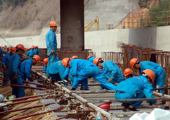 工人們正在進(jìn)行道床施工