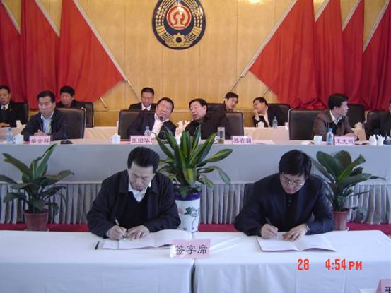 十九局集團公司承建天平公路TJ2標,集團公司黨委書記葛永利,二公司黨委書記廖愛生,二公司副總經理、天平項目經理安文杰等同志代表所有參建員工參加了會議。葛永利書記代表十九局進行了表態發言,并和業主代表簽訂安全質量責任狀。葛永利書記在發言中表示,天平鐵路沿線山勢陡峭、嶺高溝深、橋梁隧道比重大,交通運輸不便,施工難度大,能夠參加天平鐵路建設,對19局既是高度信任,也是嚴峻考驗。十九局全體參建員工一定知難而進,繼續發揚特別能戰斗,特別能吃苦,特別能奉獻的優良傳統,合理配置資源,科學組織施工,嚴格遵守合同,確保安全、質量、工期等履約,與業主和諧共贏、與監理和諧共處、與地方和諧共建,把天平鐵路建設成和諧路、綠色路、致富路,為甘肅經濟快發展大發展做出十九局人的貢獻。