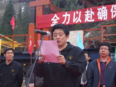 2009年4月1日下午,精伊霍鐵路建設(shè)指揮部在北天山隧道出口召開“全力以赴確保十月一日精河至伊寧段建成通車誓師動員大會”。