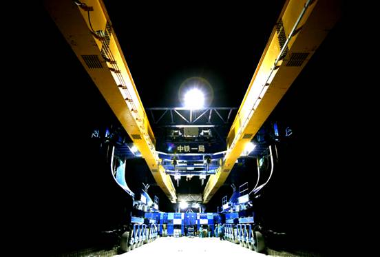 2009年以來,承擔京滬高速鐵路土建二標段德禹特大橋、禹濟特大橋和黃河特大橋共計2476孔箱梁架設任務的新運公司京滬高速鐵路架梁項目部,認真落實鐵道部 “六個確保”年度目標和全線各節點工期要求,廣泛開展了“高揚黨旗建高鐵,標準高效創一流”主題活動和“比日產,創高效,搶進度,奪全勝”勞動競賽活動,多措并舉,四點同架,不斷掀起架梁高潮,使架梁進度以平均日架10-12孔的高速度穩步向前推進。并在施工中先后創出了單機日架整孔箱梁6孔和四機六班日架整孔箱梁16孔的高產記錄。截止4月7日18時,該項目部已順利完成整孔箱梁架設455孔。