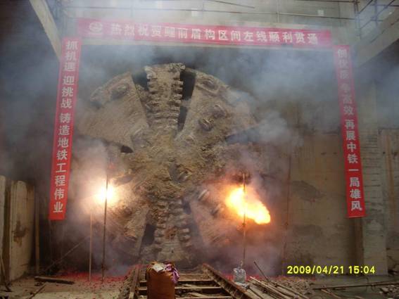 為確保前鯉區(qū)間節(jié)點工期的實現(xiàn),項目部多次組織專題會,討論復雜地層中的盾構(gòu)施工工藝,制定出加強地質(zhì)補勘及預加固的施工方案。先后共進行兩次地質(zhì)補勘,投入8臺旋噴樁機施工旋噴樁2萬余米,確保了施工的順利進行。本區(qū)間采用德國克瑞斯S-346盾構(gòu)機,施工中克服臺風、暴雨、高壓斷電及不良地質(zhì)等種種困難,在多次遇到孤石、頑石等復雜地質(zhì)情況下,先后經(jīng)歷13次換刀作業(yè),其中氣壓換刀7次,常壓換刀6次,換刀過程中無一列安全事故發(fā)生,安全受控。