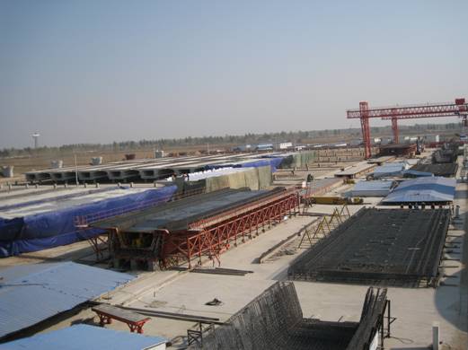 按照京滬公司的要求,中鐵一局物貿(mào)公司要在今年10月份完成所有制梁任務(wù),在明年五月份完成軌枕板預(yù)制任務(wù)。前期,由于設(shè)備、道路等因素,三個(gè)梁場(chǎng)的制梁進(jìn)度快慢不一,工期壓力愈來(lái)愈大。公司黨政領(lǐng)導(dǎo)多次積極深入京滬各梁場(chǎng),以學(xué)習(xí)實(shí)踐科學(xué)發(fā)展觀活動(dòng)為契機(jī),與項(xiàng)目班子成員一起共同查找原因、研究方案、現(xiàn)場(chǎng)督促指導(dǎo)。項(xiàng)目部也積極采取切實(shí)有效的措施,在確保安全、質(zhì)量的前提下,狠抓計(jì)劃落實(shí),充分調(diào)動(dòng)全體員工的積極性,爭(zhēng)分奪秒、全力向目標(biāo)沖刺。現(xiàn)在每個(gè)梁場(chǎng)均以每天生產(chǎn)2跨箱梁速度向前推進(jìn),軌枕板場(chǎng)建設(shè)也正在穩(wěn)步、快速邁進(jìn),預(yù)計(jì)5月中旬即可展開(kāi)生產(chǎn),物貿(mào)公司京滬三個(gè)梁場(chǎng)到處一派大干快上的景象,全面進(jìn)入了制梁高峰。