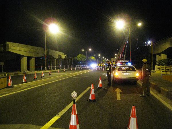 項目部秉承“安全防范精細到位,質量管理精益求精,環境保護精心操作,成本控制精打細算”的管理方針,扎實落實安全第一、預防為主”的指導思想,在跨線墩施工期間,積極和當地交警、路政、電力公司等相關部門組織協調,做好管線搬遷、施工組織設計和交通疏解工作,加強質量控制,由指揮部和項目部領導牽頭組織對施工方案進行專家評審,并嚴格安全技術交底制度,由項目部總工程師親自到現場進行安全技術交底,對開展形式多樣的安全培訓教育活動。通過全體員工的共同努力,針對下步鋼梁架設過程中可能出現的安全問題制定出詳細周密的施工方案,利用夜間車輛相應較少時段進行施工,請交警協助維護交通秩序,在得到交警部門施工組織方案審批后,4月27日展開了鋼梁架設工作。