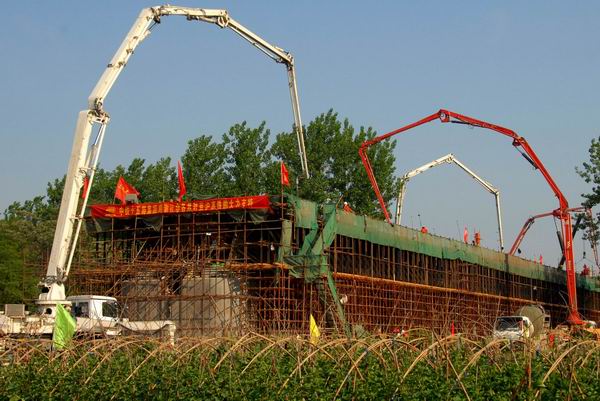 為使現澆梁順利澆筑,在施工前該單位就做了精心準備和具體部署。一是召開八丈溝澆筑前施工準備會。集團公司副總經理兼京滬高鐵指揮部指揮長、黨委書記習仲偉和常務副指揮長張玉軍等指揮部領導到會并提出具體安排,要求對技術和現澆梁施工人員進行全面培訓及到別的單位進行觀摩學習,使得每一位員工在思想上引起高度重視,明確自己所在崗位的重要性及在施工過程中要掌控的關鍵環節。二是制定了專項施工技術方案和準備。七公司副總經理兼京滬高鐵項目部經理許滌非、項目書記董恩情、總工王繼東等率領項目部一班人馬按照局指揮部的要求,精心組織,合理分工,從混凝土澆筑前對支架、模板、鋼筋和預埋件的全面檢查,到振動棒的移動間距,以及混凝土收漿抹面的人工拉毛、養生等進行詳細的分工和安排,并是制定了專項安全措施,成立安全領導小組,專門設計安全欄桿、腳手板、爬升梯和安全網,施工現場設置隔離欄桿和醒目的標志牌、限速牌,夜間設置指示燈等,并成立了后勤保障組以及時為施工人員送上可口的飯菜。