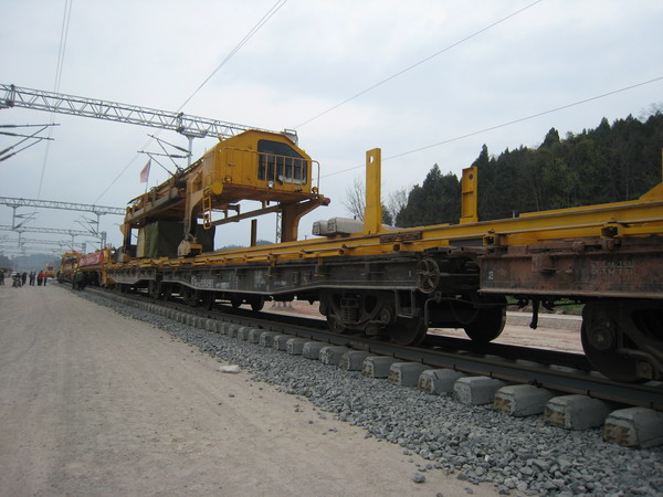達成鐵路雙線西段分為六個片區:從成都起至達州方向分別為清泉、隆盛、積金、倉山、大英、遂寧。為了實現5·30雙線開通目標,集團公司達成指揮部將全線六個片區的卸碴、整道床任務分配給各參戰子公司,劃分責任片區,倉山片區為三公司成都項目部的管區。接到任務后,面對施工便道全部被挖斷,大型機械無法進場;南方農忙時節到來,工人很難找的困難。項目部積極組織卸碴隊伍和施工機械上場,調整管理人員分工。在短短的十個小時內,迅速組織了一百多人的隊伍和三臺卸碴的挖掘機上場,確保了當天晚上駛進管區內的64節車廂,兩千多方道砟卸車任務的完成。在隨后的十多天里,所有技術人員都吃住在現場,做到了“只要有調來的道砟列車,就在第一時間組織卸碴”。測量和整道床的隊伍則緊隨其后,及時的勻碴、整道,實現了每天成型三公里標準道床的速度。經過項目部全體員工十三天不分晝夜的奮力拼搏,終于在今天上午完成了31公里標準道床的整道任務,確保雙線鋪軌順利通過管區。