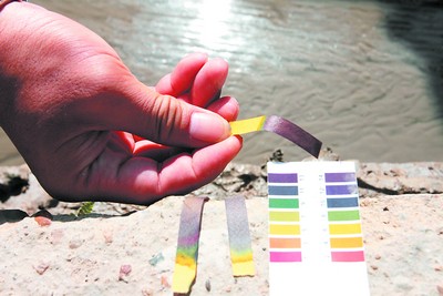 通過PH試紙檢測,排出的污水含堿嚴重超標