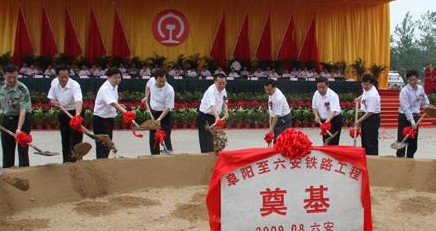 由安徽省和鐵道部合資興建的又一鐵路重點工程--阜陽至六安鐵路正式開工建設(shè)。8月10日上午,鐵路開工建設(shè)動員大會在六安市分路口鎮(zhèn)隆重舉行。省委書記王金山宣布阜六鐵路正式開工,省長王三運講話。副省長孫志剛主持開工動員會,省黨政軍領(lǐng)導詹夏來、朱先發(fā)、王鶴齡、向孝民,省政府秘書長方寧、上海鐵路局局長安路生出席開工典禮。