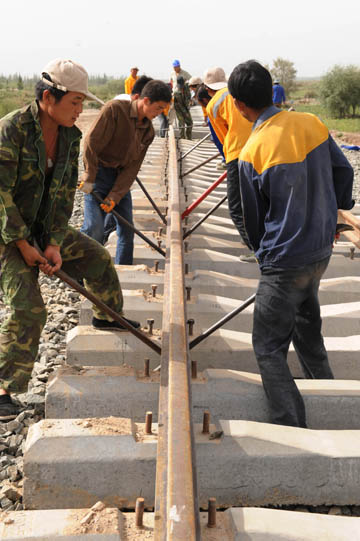 客運(yùn)在鐵路運(yùn)輸中越來越高的比重,是新疆經(jīng)濟(jì)社會(huì)發(fā)展的又一個(gè)鮮明標(biāo)志。從改革開放初期年發(fā)送旅客160多萬人到2008年發(fā)送旅客1300多萬人,鐵路承載了95%以上的進(jìn)出疆客流。于9日正式鋪軌的喀什至和田鐵路從南疆鐵路喀什車站接軌,全線長487公里,項(xiàng)目投資估算總投資50余億元。