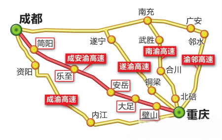目前,連接成渝的主要是成渝高速和成遂(寧)渝高速,成渝高速建于上世紀(jì)90年代,路面條件有限,在一定程度上難以滿足當(dāng)前高速路行駛的要求,而成遂渝高速又難以惠及川東部分縣區(qū)與重慶的交流合作。此外,加上正在建設(shè)的南渝高速、達(dá)渝高速、宜瀘渝高速公路,以及昨日開工的成安渝高速公路,川渝間的省際高速公路將多達(dá)6條。