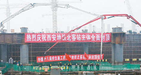 隨著地鐵北客站主體結(jié)構(gòu)封頂,附屬工程也逐漸進入尾聲,同時國鐵也陸續(xù)進入沖刺階段,為年內(nèi)國鐵西安北站南站房封頂提供了全面的保證。