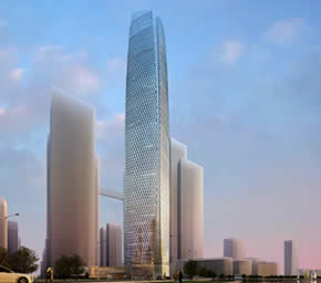華中地區第一高樓落戶武漢王家墩商務區。9月25日,王家墩商務區核心區西南角的超高層地標性建筑——武漢中心開工,設計高度428米,有88層,建成后將是華中第一、中國第八、世界第十六高樓。