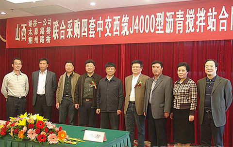 2009年10月26日,山西路橋一公司、太原路橋、朔州路橋聯合采購中交西筑公司4套J4000型瀝青攪拌站合同簽約儀式在太原隆重舉行,加上9月份忻州遠大路橋先期購買的西筑公司1套J4000型瀝青攪拌站,標志著西筑大型瀝青攪拌設備已批量進駐山西路橋系統,這在我國高端攪拌站銷售史上尚屬首次。