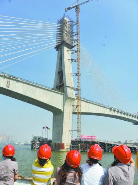 2006年9月14日,該橋開始動(dòng)工。由于受航道、漲落潮、2.3米/秒的高水速以及超過30米水深等因素的影響,西江特大橋技術(shù)要求非常高,而且,大橋施工時(shí),必須采用橋面掛籃的方式進(jìn)行施工,所以難度也非常大。