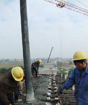此次澆注的0號(hào)塊是連續(xù)梁主墩133號(hào)墩墩頂0號(hào)塊,設(shè)計(jì)長(zhǎng)度10米,梁高5.8米,梁寬11.2米。現(xiàn)場(chǎng)技術(shù)員介紹,這次共澆筑了240.8立方混凝土,連續(xù)9小時(shí)方澆完,是廣珠鐵路一標(biāo)全線最先開(kāi)始的連續(xù)梁梁體施工。
