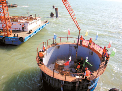 從南澳大橋建設管理部門獲悉,南澳大橋海上首個承臺的樁芯混凝土近日一次性澆筑成功。