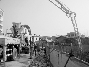 在澆筑現場記者看到,現場環境干凈整潔,澆筑的施工工人也不超過20人。據悉,此次南苑小區F幢建設工地現場需要澆筑混凝土1100余立方米。盡管澆筑量并不大,但西昌光恒混凝土有限公司對此項工程高度重視,派出數臺灌裝車等大型專業機械進行澆筑,僅一天時間就能完成澆筑,但如果采用現場攪拌機的話,則需要100名工人花1周的時間才能完成。