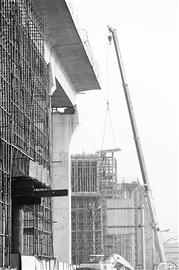 12月5日,武漢市軌道交通一號線二期工程額頭灣立交橋完成混凝土澆筑施工,長達157米的3跨立交橋預應力箱梁全線合龍。武漢輕軌二期工程跨越交通繁忙的武漢三環公路,施工單位利用吊籃進行空中作業,既保證了工程順利進行,又未影響跨越路段的車輛通行。