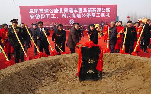 12月27日,安徽省舉行阜(陽)周(集)高速公路北段通車暨阜(陽)新(蔡)高速公路安徽段開工、周(集)六(安)高速公路復工典禮。