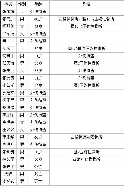 目前,事故中受傷人員生命體征平穩,全部脫離生命危險。