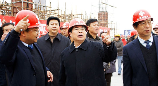 咸陽機場二期擴建工程是陜西省人民政府和中國民用航空局(Civil Aviation Administration of China,簡稱“民航局”)確定的“十一五”重點建設項目,也是去年西部大開發新開工的18項重點工程之一。工程自開工以來,在全體參建人員的共同努力下,目前已經進入全面施工階段,作為二期擴建工程重要組成部分的T3航站樓工程已完成鋼管柱制作和吊裝,正在實施梁、板、柱鋼筋綁扎及混凝土澆筑。袁省長一行通過安全通道進入T3航站樓施工現場進行視察。