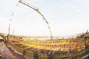 1月25日,在仲景大橋施工工地上,一片繁忙景象。為確保春節前大橋全面合攏,600名技術工人正冒著嚴寒緊張施工。