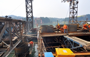 新政嘉陵江特大橋是在建的重要出川通道——巴南高速公路中最長的特大橋,該橋全長1036米,位于新政航電樞紐上游1500米處。該項目自去年9月破土動工以來,經過數百名建設者的緊張施工,目前,已完成橋梁樁基設計135根,成孔46根,樁基砼澆筑18根,水中浮橋及導向船安裝到位,鋼護筒安裝完成18根。