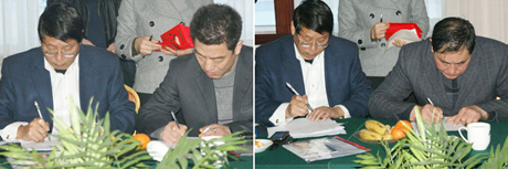 十堰市散裝水泥辦公室主任張正國與全市各區(qū)建設局水泥企業(yè)領(lǐng)導負責人簽訂年度目標責任狀