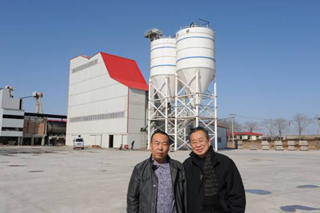 當我們調研腳步從美麗的寧河邊上經過時,一座開闊明亮整潔、紅頂白墻的干混砂漿工廠出現在眼前。張國榮秘書長告訴我們那是天津建材協會與企業家合資成立的晟隆華科技發展有限公司。雖然不在原規劃行程之中,但數字水泥網的記者仍對這個企業產生了濃厚的興趣,于是提議前往,張秘書長爽快地答應了我們。