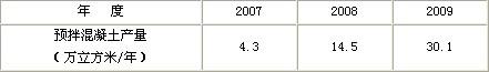 3年中預拌混凝土產量提高了7倍,今年將翻一番達到80萬立方米/年。