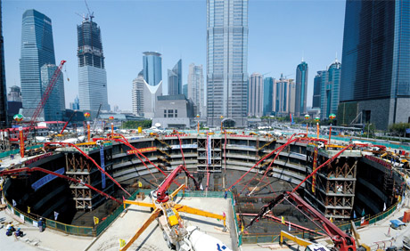 萬丈高樓平地起。一棟高度為632米,超過420.5米的金茂大廈和492米的上海環球金融中心的中國第一高樓,它的底板如何鑄就?三一給出了完美答案。