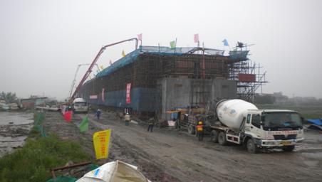 中鐵二十四局集團杭甬Ⅲ標吳澤浦連續梁(48+64+48m)混凝土方量達1850余立方,為盡快實現開工澆注,杭甬一分部周密部署、合理安排、上足人員設備,加強關鍵環節、關鍵工序、關鍵部位的技術保障,從人員設備、技術交底,材料準備等方方面面保證了第一座連續梁的按期澆注。