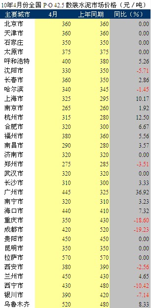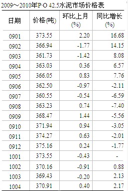 3月寧夏水泥價(jià)格不同區(qū)域的不同企業(yè)價(jià)格分別下調(diào)30~50元/噸不等,下調(diào)后的銀川市場(chǎng)主流價(jià)格P.O 42.5散裝390元/噸。據(jù)了解,此次價(jià)格下跌主要原因一是本身市場(chǎng)需求淡季;二是去年投放的新增產(chǎn)能今年才開(kāi)始有所體現(xiàn)。隨著2010年新增產(chǎn)能的釋放,市場(chǎng)供給壓力將進(jìn)一步增大,在供略過(guò)于求的情況下,市場(chǎng)行情下向走勢(shì)難以改變。