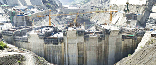 自2009年3月27日開(kāi)始澆筑以來(lái),截至2010年7月31日,溪洛渡大壩已累計(jì)澆筑混凝土100萬(wàn)立方米,最大壩高達(dá)401米,溪洛渡大壩在峽谷中一天天長(zhǎng)高。