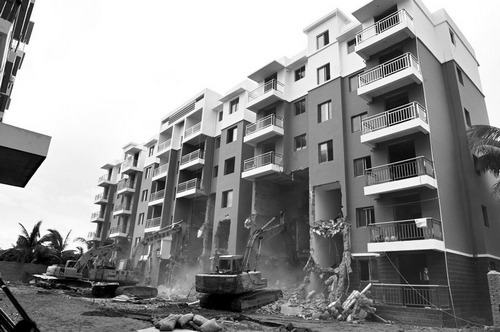 348棟違章建筑的轟然倒下,對搶建違章建筑的業主產生了強大威懾力,有部分業主為了配合政府工作、減少損失,對違章建筑進行了自拆。三亞市綜合行政執法局有關負責人介紹,根據該部門的調查發現,目前三亞市60%以上的違章建筑施工工地已停工。