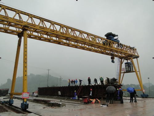 澆筑時,天空雖然下著毛毛細雨,但是工人們的干勁不減,早上10:00左右澆筑工作在震耳的鞭炮聲中正式開始,在龍門吊的配合下,混凝土準確地入模澆筑,下午13:00左右成功澆筑完畢。第一片30米預制T梁澆筑圓滿成功,為預制場全面展開工作,為整個項目的順利推進打下了堅實基礎。