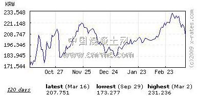 三、由于受金融危機影響,韓國貨幣大幅貶值,據統計2008年10月人民幣突破了1元兌200韓元的匯率,而隨后不久則上漲到了220韓元以上,較08年年初1元人民幣兌130韓元相比,韓元貶值60%左右(如圖四)。韓元如此大幅貶值,也是進口MPEG價格一路走低的重要原因。