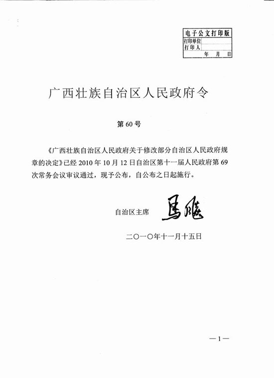 核心提示:廣西自治區(qū)人民政府令修正《廣西壯族自治區(qū)散裝水泥管理規(guī)定》部分條款