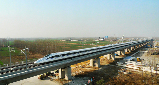 京滬高鐵先導段世界最高運行速度的誕生,標志著中國鐵路通過引進消化吸收再創新,成功搭建了世界最先進的高速鐵路動車組技術平臺,在動車制造、高速鐵路、高原鐵路、重載運輸、既有線提速等成套技術以及建設規模、運行速度、運營管理方面全面領先世界,為世界高速鐵路的快速發展樹立了新的坐標。