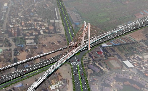 廣州,2010年12月28日 貴廣鐵路最大鋼橋主塔下橫梁混凝土澆筑完成 這是跨穗鹽路斜拉橋設(shè)計(jì)效果圖。