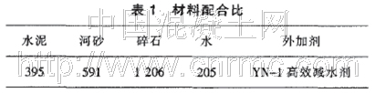 (3) 選用配合比(設計強度等級為C25),如表1所示。