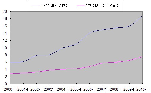 第一,也是最根本的一點(diǎn),10年來(lái),我國(guó)水泥工業(yè)的發(fā)展充分滿足了新時(shí)期國(guó)家經(jīng)濟(jì)建設(shè)的需求,充分滿足了全面建設(shè)小康社會(huì)的需要。水泥工業(yè)由經(jīng)濟(jì)發(fā)展所拉動(dòng),水泥又反過(guò)來(lái)作為基本建設(shè)的基礎(chǔ)原材料支撐著國(guó)民經(jīng)濟(jì)的發(fā)展(見圖1)。快速發(fā)展的新型干法水泥完全滿足了市場(chǎng)對(duì)高質(zhì)量、高標(biāo)號(hào)水泥的需求,水泥年產(chǎn)量由2000年的5.97億噸增長(zhǎng)到2010年的18.8億噸,2001~2010年累計(jì)生產(chǎn)水泥118億噸,是上個(gè)世紀(jì)1949~2000年51年總和的1.74倍。